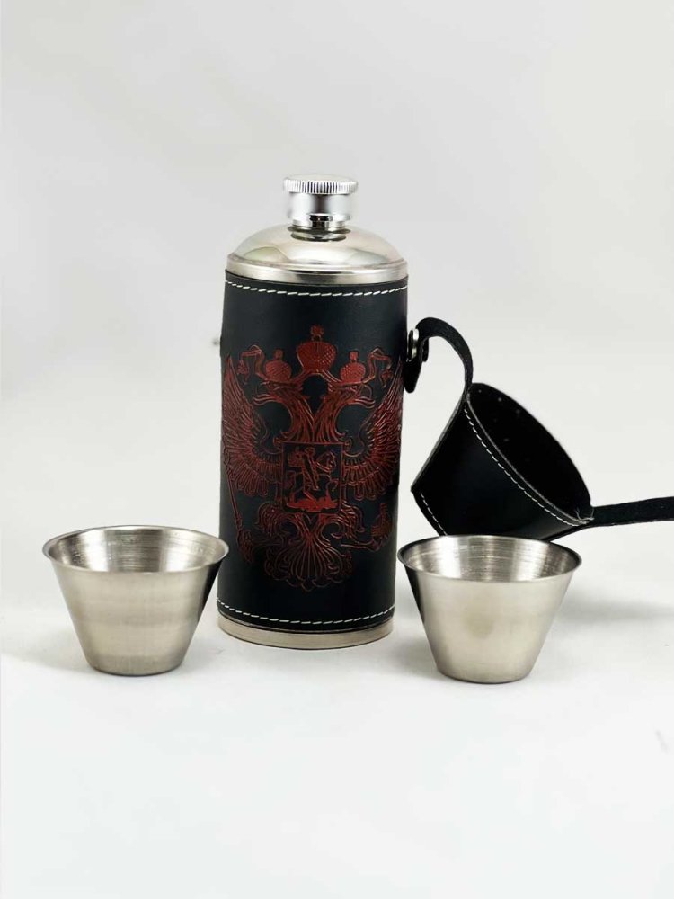 Flask metal Cylindrical, with two piles, the arms of Russia, in a box Описание товара скоро будет!Похожие товары: $18.55 $15.45