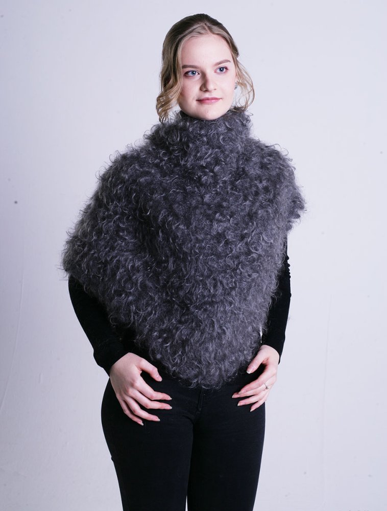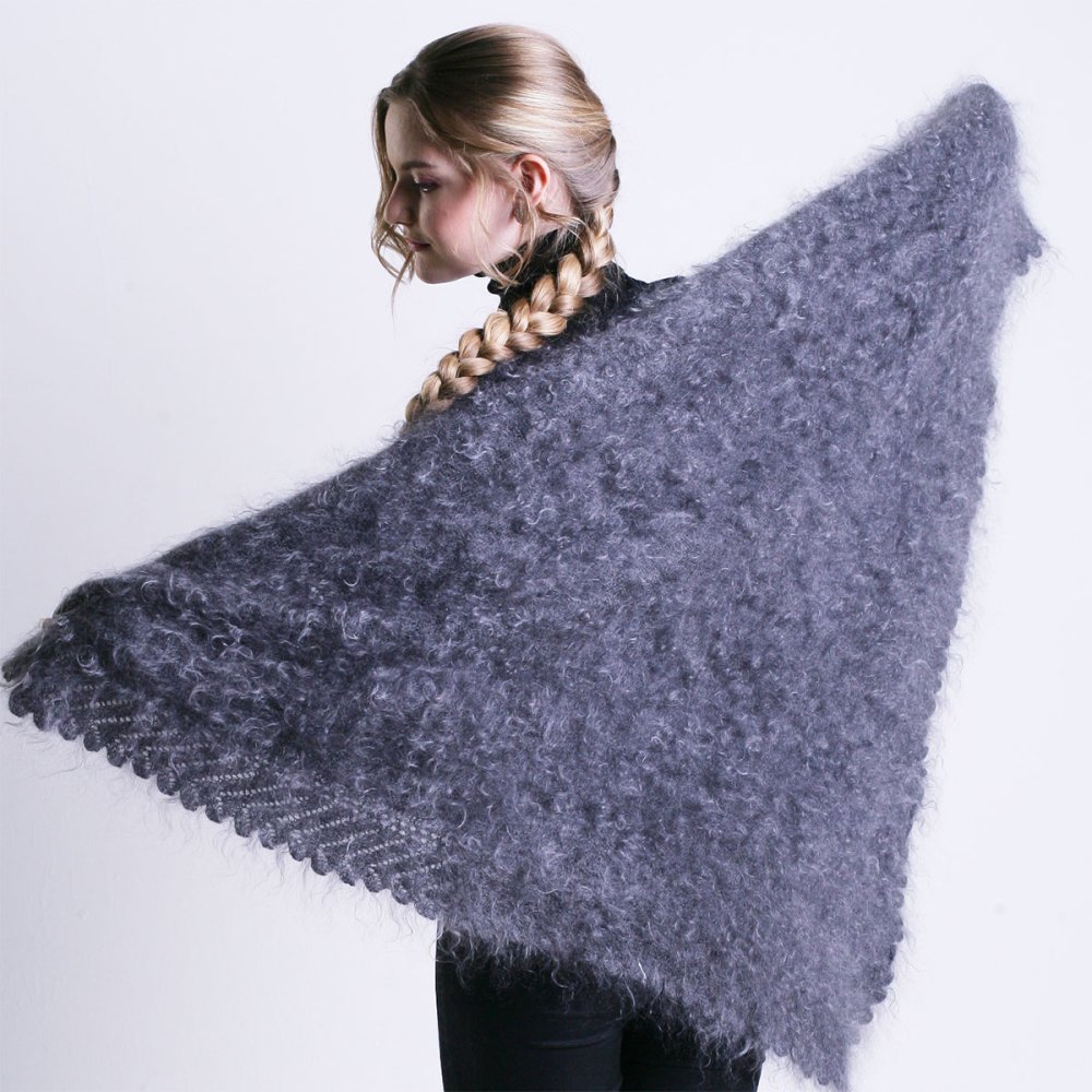Pavlovo Posad Shawl Downy shawl handmade kerchief gray dense, diagonal 1.5