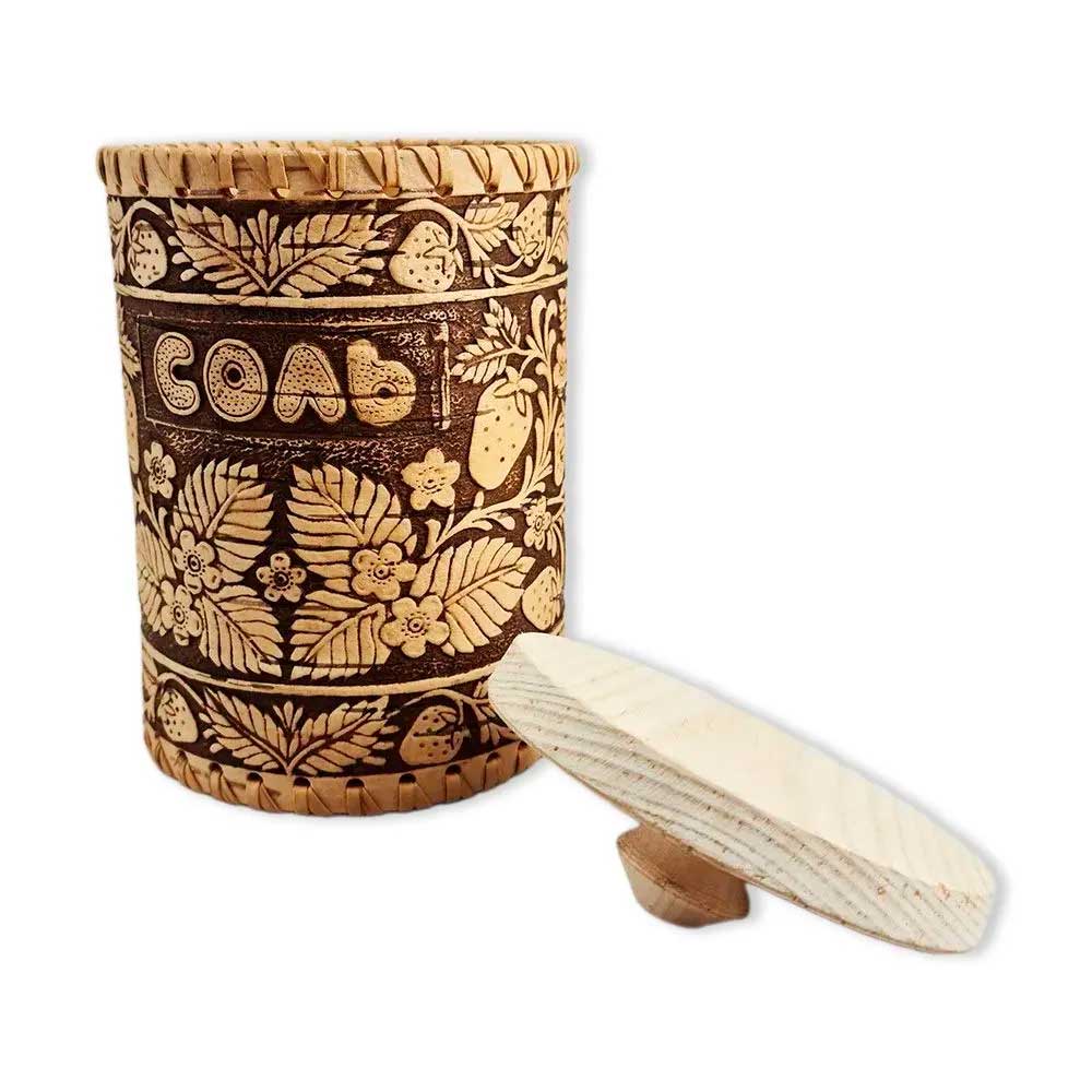 birch bark products tuesok Birch for salt, 13 x 10 cm. Bereshina tusk for salt is beautiful, it is original. It is made of natural wood, decorated with pretty patterns and inscriptions scorched on Bereste. Tusk's cap is tightly closed, which contributes to the safety of the product, which is located in it. When there are such cute little things in the kitchen, even the food seems much delicious. Also, you can buy the same tuski for sugar and tea.Похожие товары: $12.40