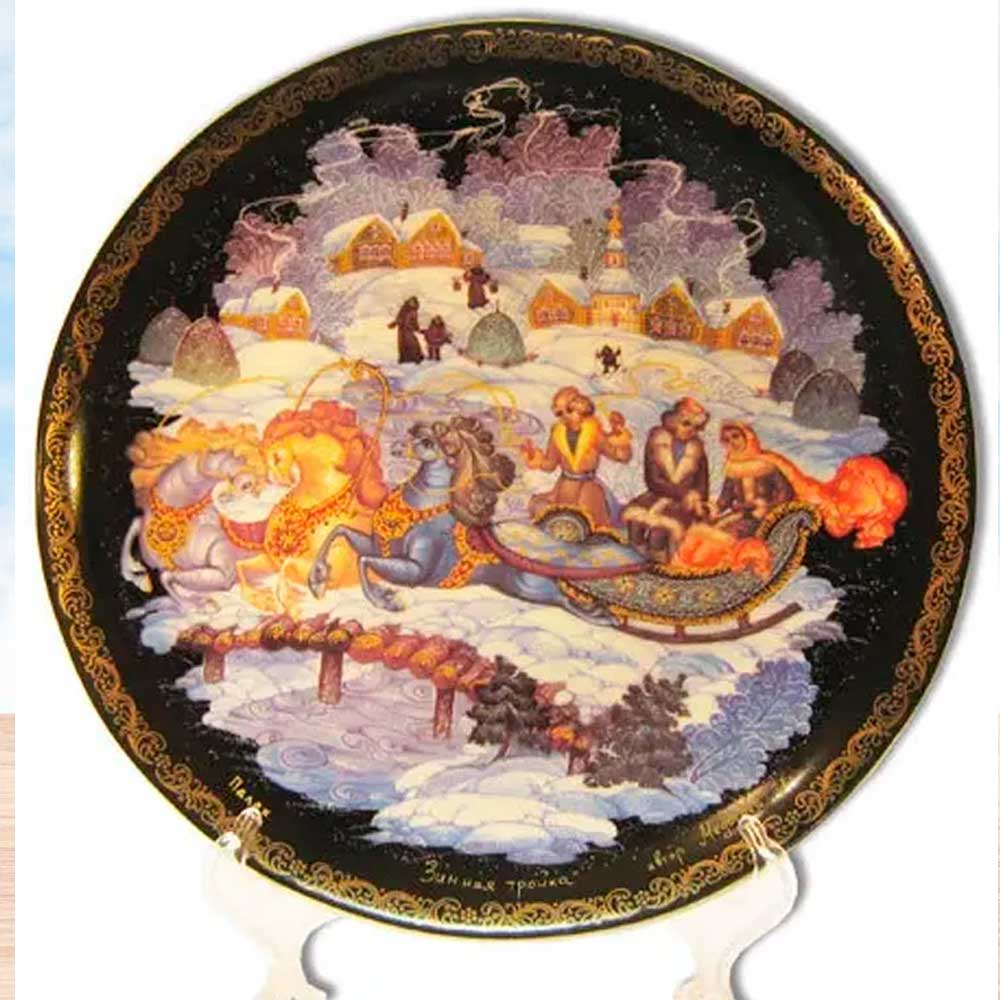 Plate 20-27 Palekh 20 cm. "the Winter three" + a support in packing