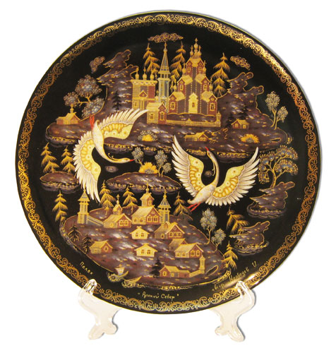 Plate 20-28 Palekh 20 cm. "Russian north" + a support in packing